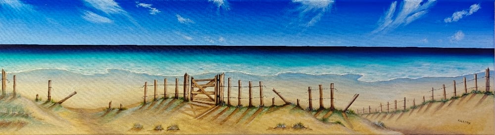 I included the weathered wooden gate and the old wire fence to ground the scene and give it a sense of place, almost like a threshold you're about to cross. The light was a big part of the story for me here; I used a low sun to cast those long shadows across the sand and really highlight the movement of the clouds. To me, it feels like a quiet, perfect morning by the coast."